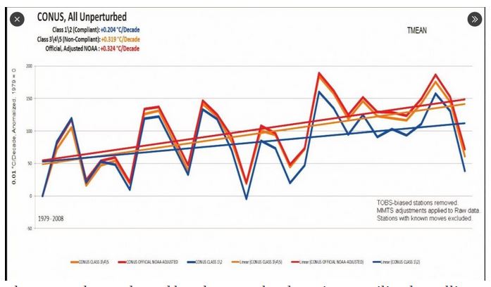 “This trend is very strange: is it possible that natural disasters essentially appeared towards the middle of the twentieth century and that they showed such dramatic growth until the end of the century?” the authors ask. “It should also be noted that this trend is at first sight ‘consistent’ with the growth of the global temperature of the planet.” Now, relevant to this analysis is the statistical fact that deaths from natural disasters have declined 99 percent from a century ago. So, regardless of the various reasons for that fact, it is dubious that the world is suddenly confronted by the ‘existential danger’ of climate change. The authors further show that one major reason for the increase in datapoints for many studies is that technological advances have increased the capacity of nation-states to report on weather events and natural disasters. “In support of this interpretation, there is also the growth of earthquakes, shown in Fig. 9, which should have nothing to do with global warming and which presents a temporal trend similar to that of all other natural disasters,” the authors add. “In our opinion, this confirms that the main reason of the increase in the second half of the twentieth century is the growing reporting capacity of individual states and that since this capacity has stabilized on a reliable level, the number of disasters has become stationary or has even gone down,” the study continues. “It is the same phenomenon already observed for hurricanes and tornadoes.” A groundbreaking study appears to corroborate this overreporting problem. “Corrupted Climate Stations: The Official U.S. Surface Temperature Record Remains Fatally Flawed,” has uncovered shocking results: Approximately 96% of U.S. temperature stations used to measure climate change fail to meet the “acceptable” and uncorrupted placement standards set by the National Oceanic and Atmospheric Administration (NOAA).