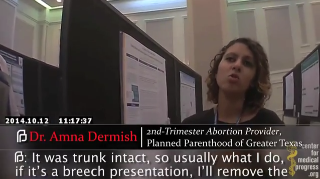 The 11th video: catches a Texas Planned Parenthood abortionist planning to sell the intact heads of aborted babies for research. Amna Dermish is caught on tape describing an illegal partial-birth abortion procedure to terminate living, late-term unborn babies which she hopes will yield intact fetal heads for brain harvesting.