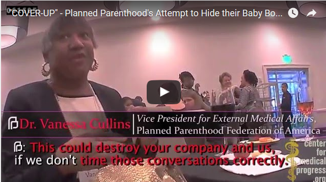 Unreleased Videos: Unreleased videos from CMP show Deb Vanderhei of Planned Parenthood caught on tape talking about how Planned Parenthood abortion business affiliates may “want to increase revenue [from selling baby parts] but we can’t stop them…” Another video has a woman talking about the “financial incentives” of selling aborted baby body parts.