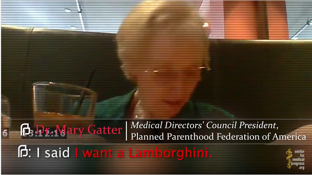 In the second video: Planned Parenthood’s Dr. Mary Gatter joked, “I want a Lamborghini” as she negotiated the best price for baby parts.