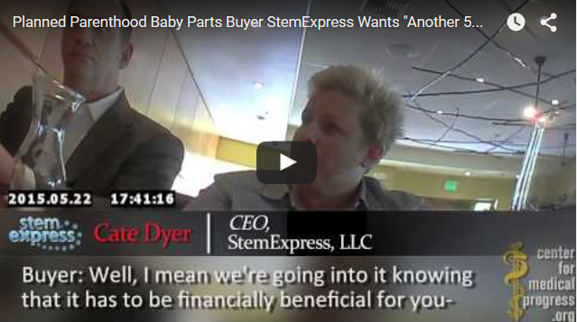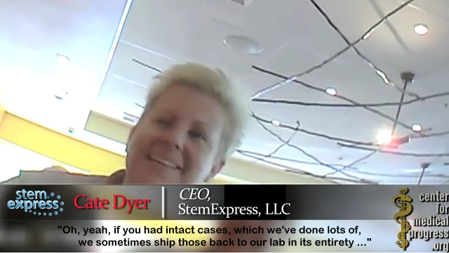 In the eighth video: StemExpress CEO Cate Dyer admits Planned Parenthood sells “a lot of” fully intact aborted babies.